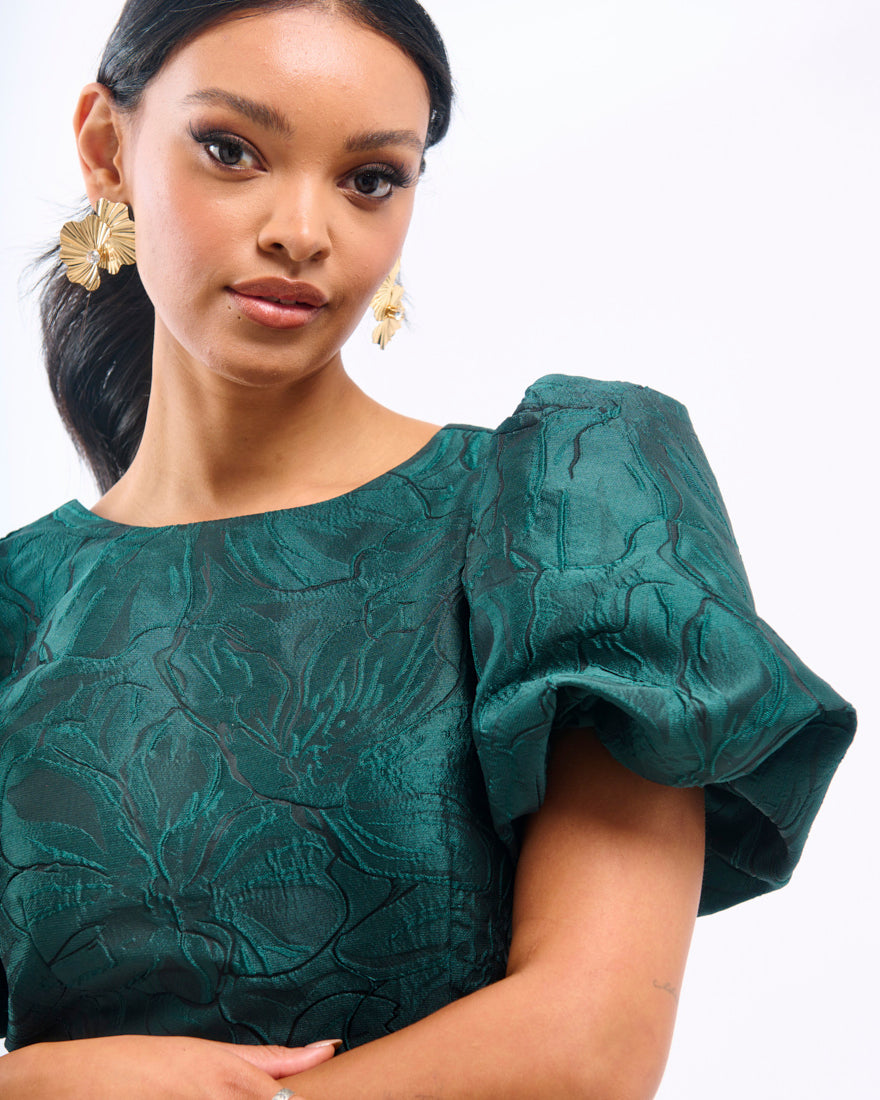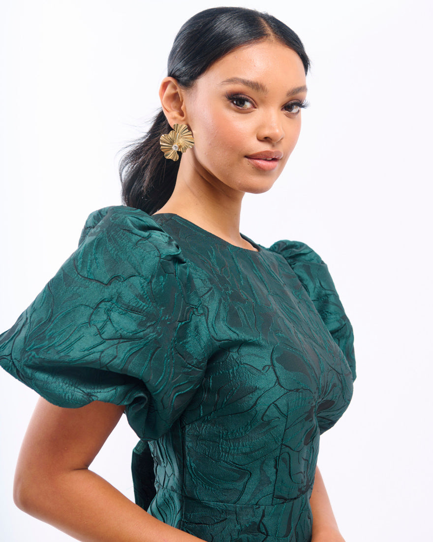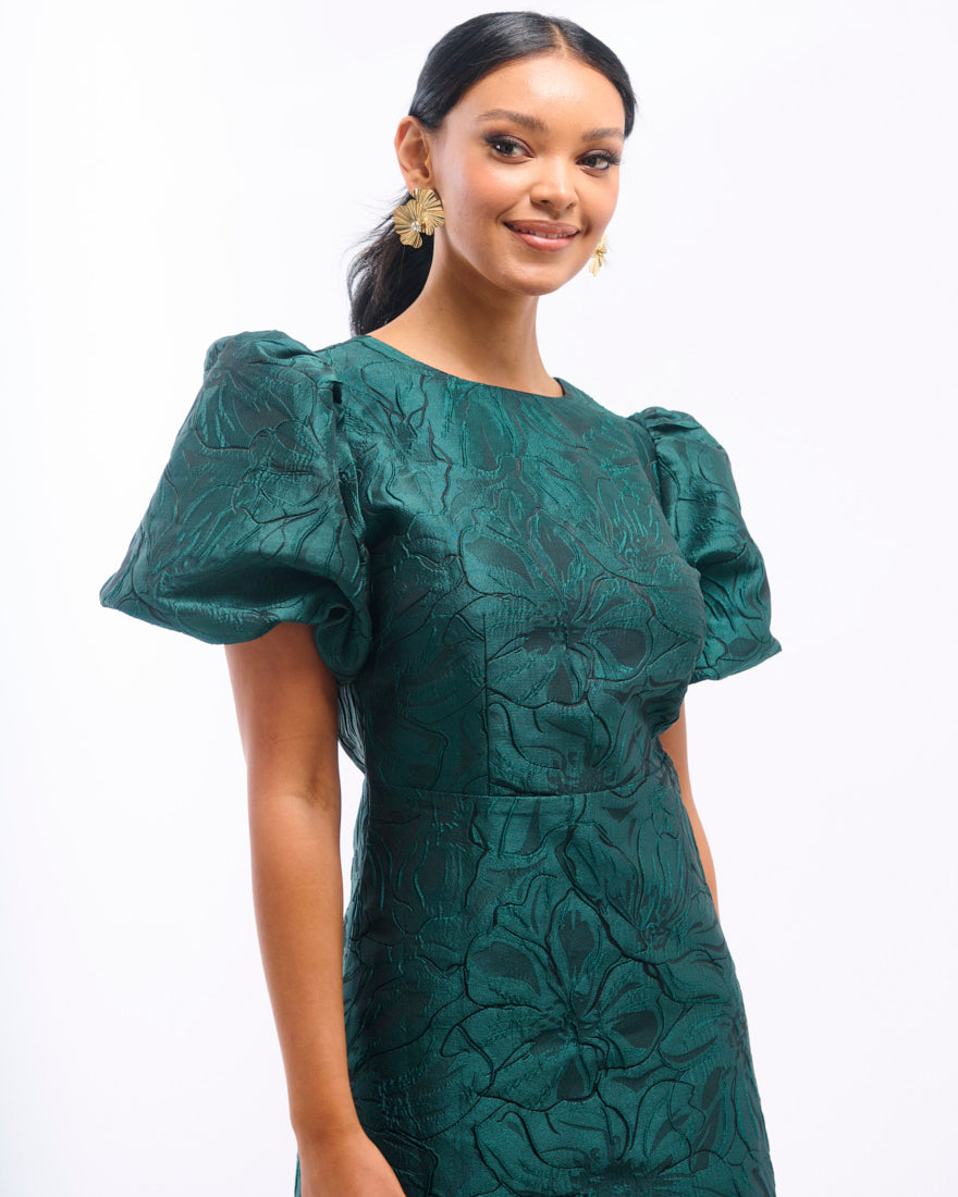 Great dress, flattering fit. Sleeve length is ideal to cover tops of arms. Fabric is lovely with the gold thread running through too. Will definitely buy from them again.