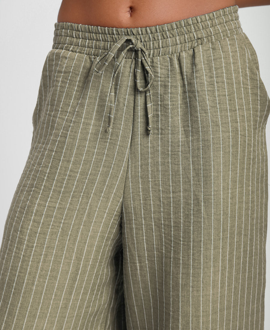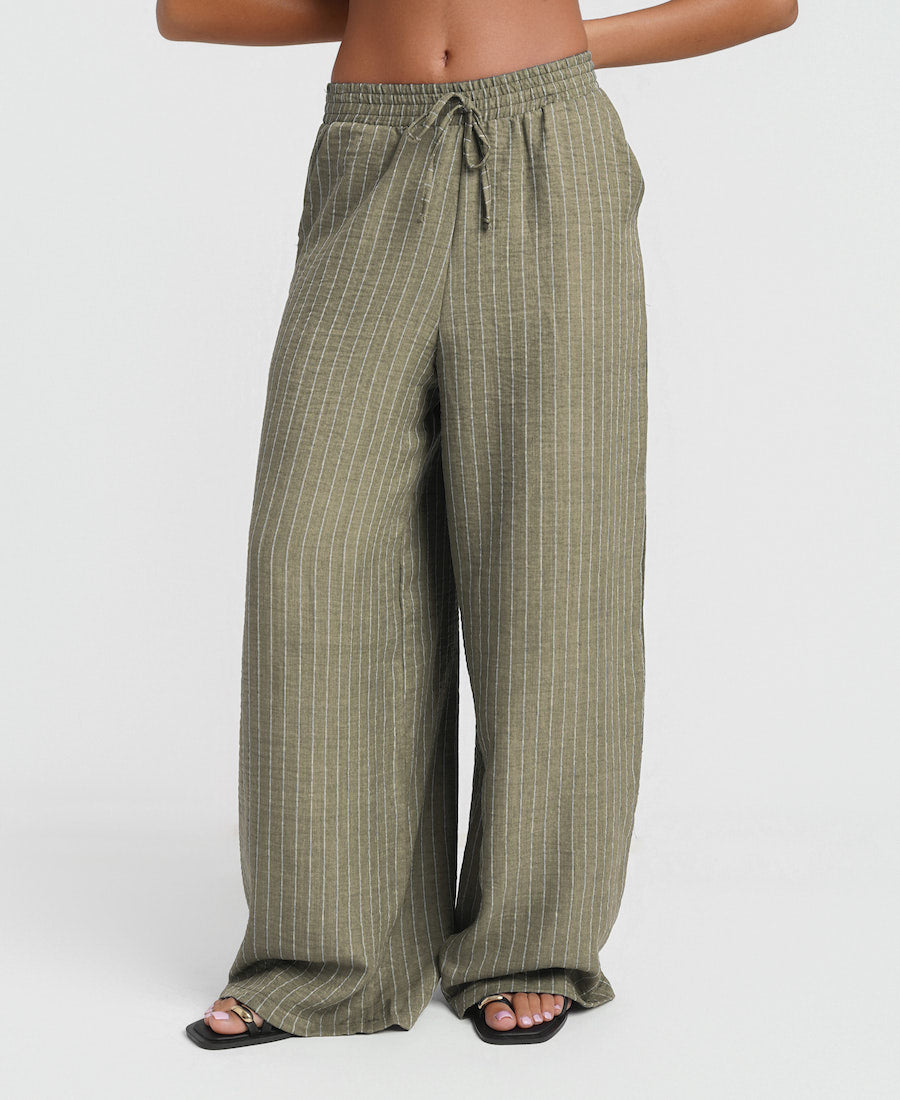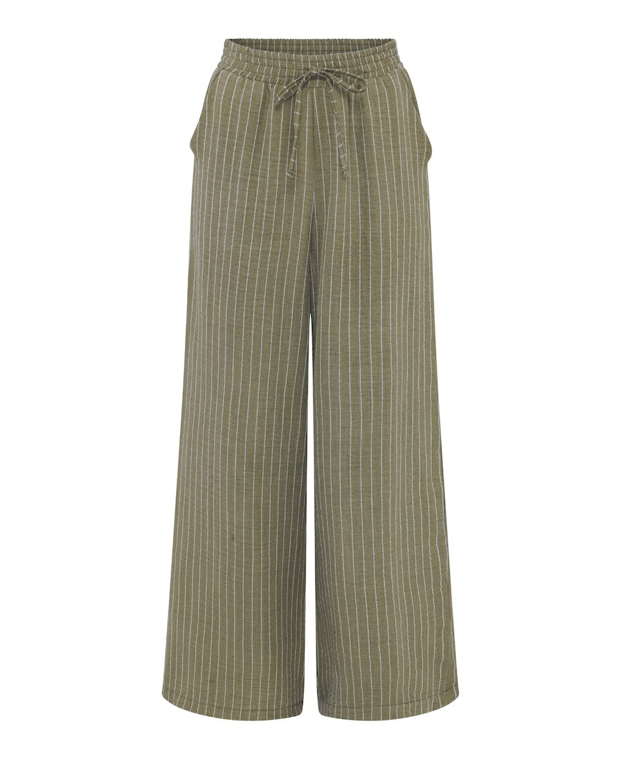 Khaki Stripe Wide Leg Trousers