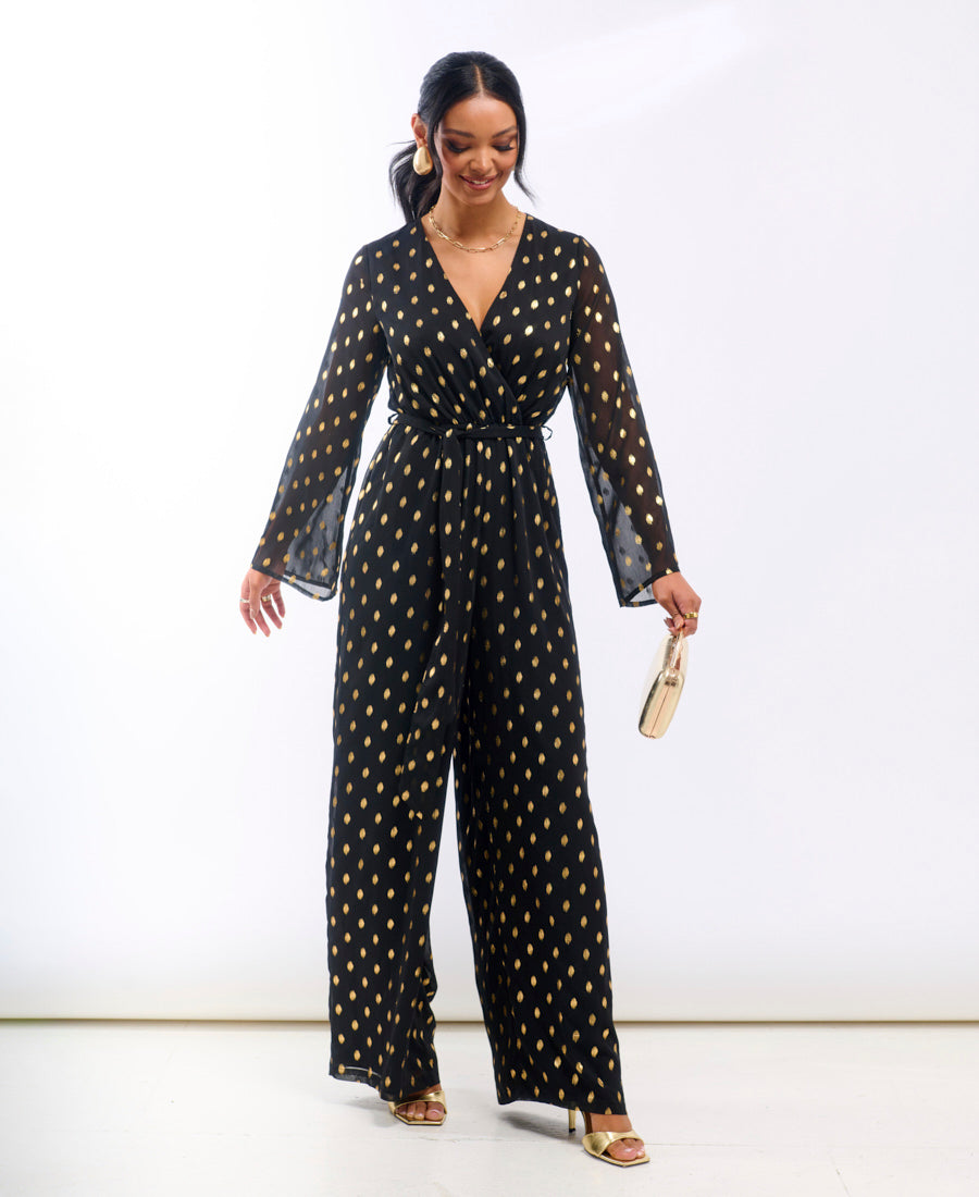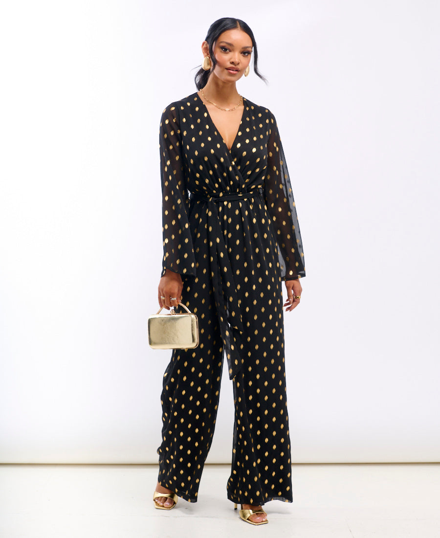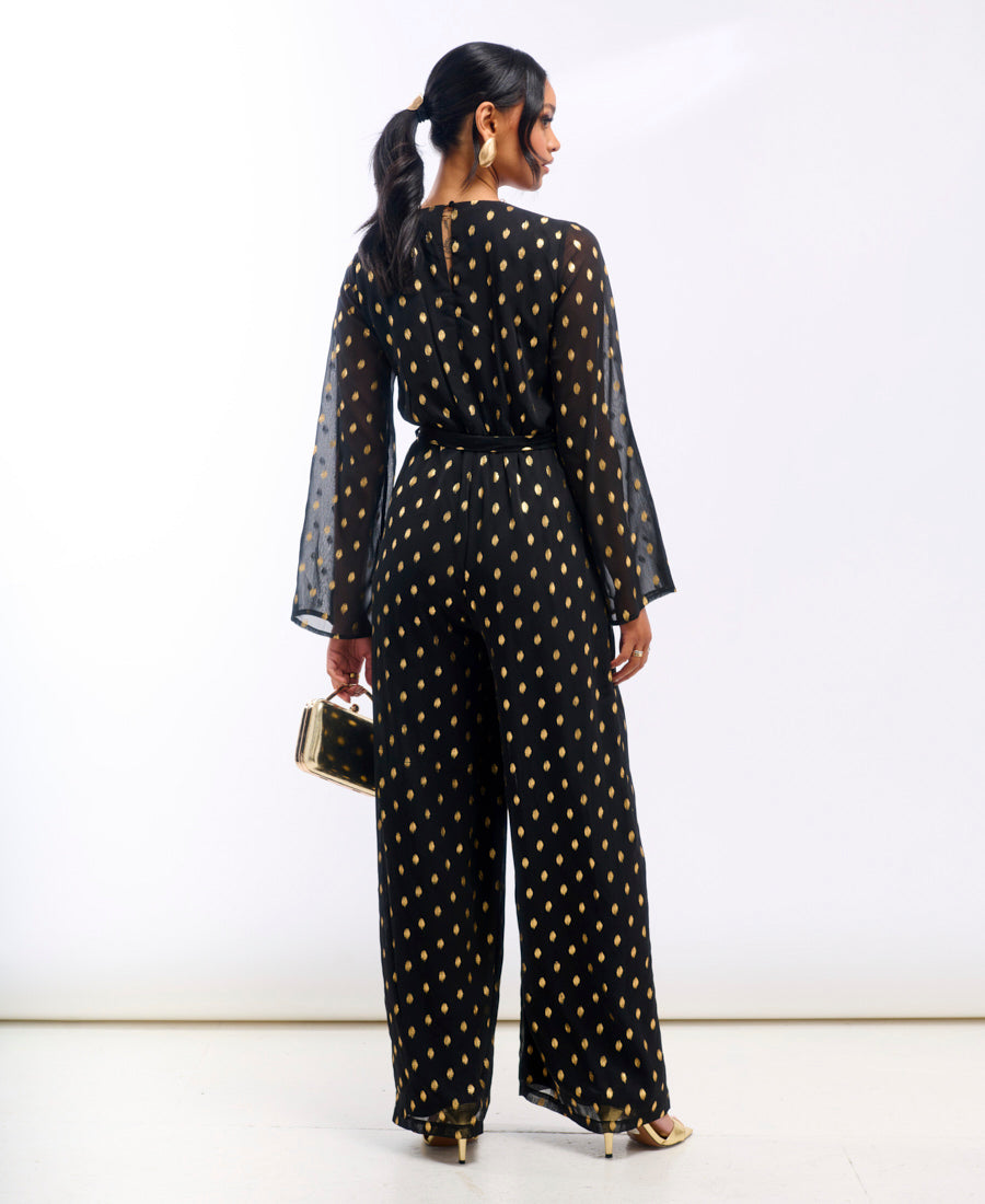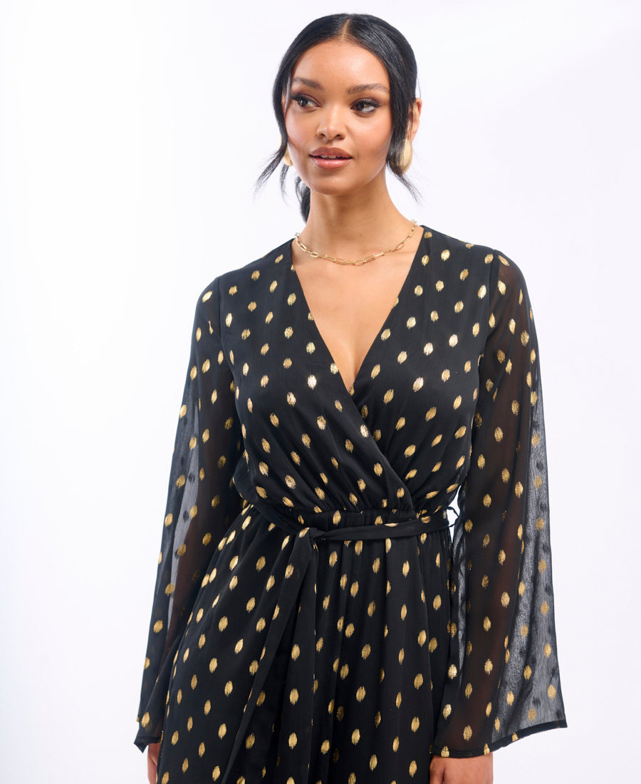 Black Chiffon Foil Puff Sleeve Midi Dress