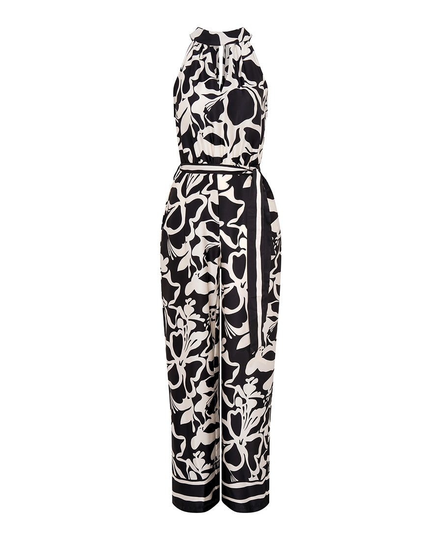 Black Floral Satin Halterneck Jumpsuit