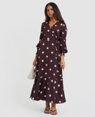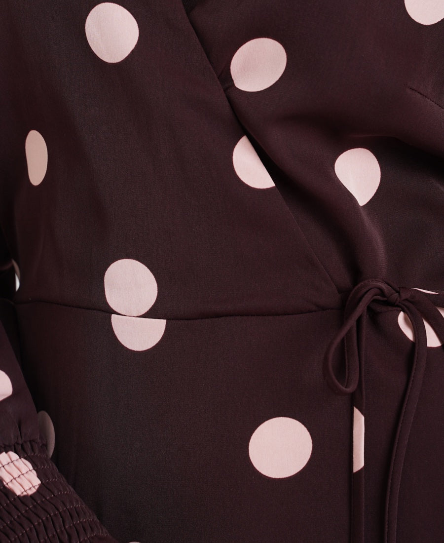 Berry Spot Wrap Long Sleeve Midi Dress