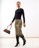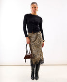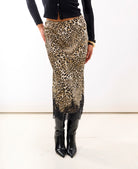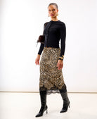 Channel effortless glamour with our Leopard Satin Lace Mix Skirt – a sultry, statement-making piece that’s as versatile as it is striking. Crafted in silky satin with a bold leopard print, this skirt drapes beautifully over the figure. The hem is finished with a delicate lace trim, adding a feminine touch that softens the wild print.